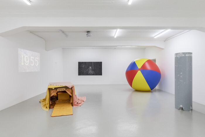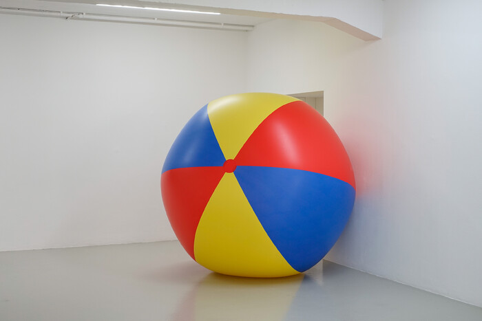 During the exhibition period, 9 July–3 October 2022, this 250 cm large ball deflates. By employing methods from palliative care, the artists, health practitioners, and comedians from The Palliative Turn↗ hosted the Kunstlerinhaus Bremen with an exhibition around the topics of surrendering, soothing pain, and death itself.